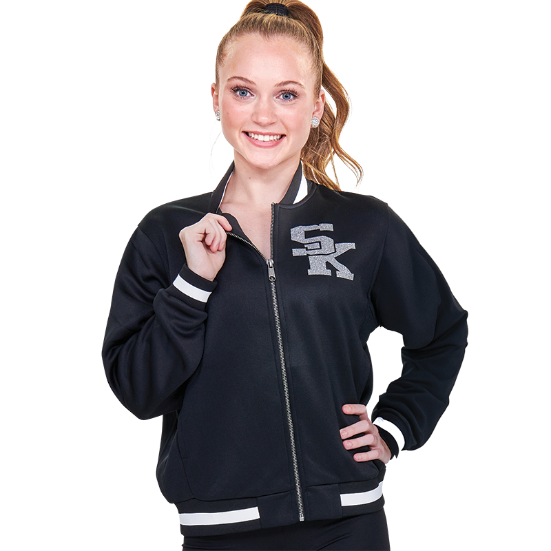 Ladies V Street Jacket. Classic full-zip jacket built from durable double-knit polyester with striped rib-knit trim for a modern varsity-inspired look.